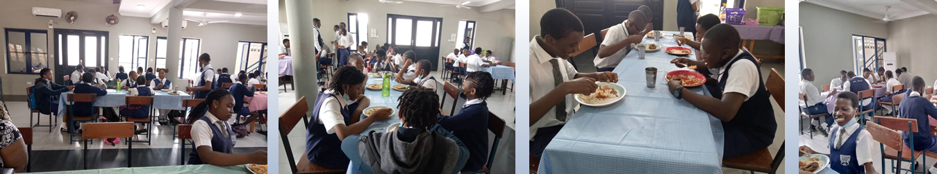 The school provides nutritious meals of the right quantity and quality for students. Both day students and boarders are provided with lunch. All other meals are taken together by boarders in the dining hall. The menu includes continental and local dishes. Some of the meals on the menu are pottage with vegetables, Jollof rice, swallow such as Pounded yam, semovita and amala. Lunch is available for staff and students of the school.
